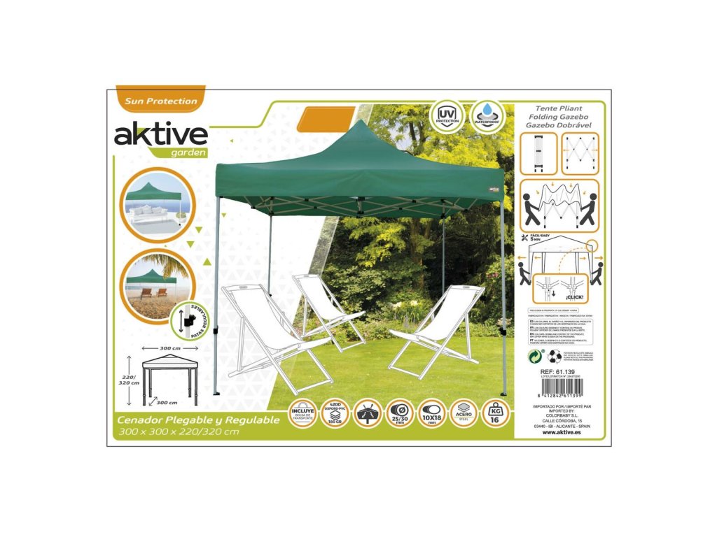 Záhradný altánok Aktive Skladateľný Nastaviteľná výška Oceľ Polyester Zelená (300 x 320 x 300 cm)