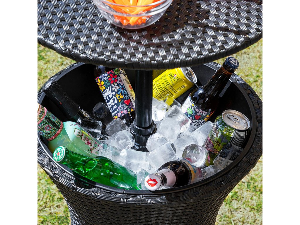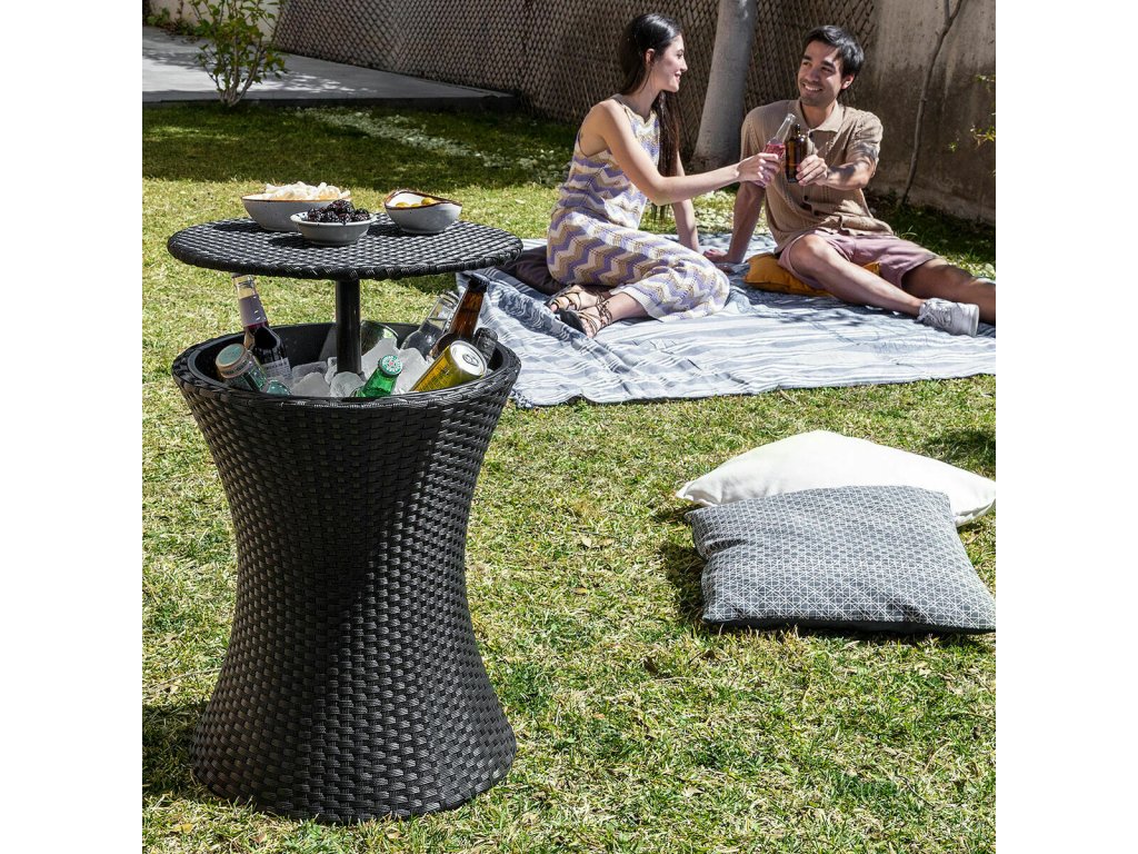 Multifunkčné použitie (3 v 1): konferenčný stolík, priestor na pokladanie kokteilov a rôznych iných predmetov, chladiaci stolík. Je vhodný na záhradu, terasu, k bazénu ai.