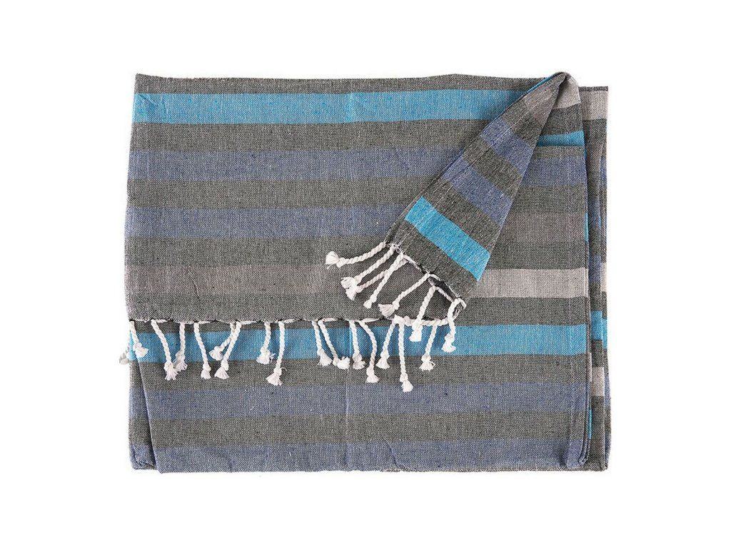 Bavlnená deka so strapcami Pruhovaná Modrá Béžová Purpurová (170 x 90 cm)