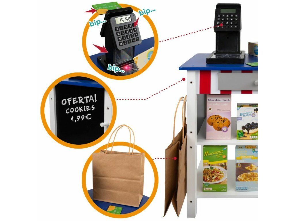 Pre naše deti chceme len to najlepšie, a preto by sme Vám chceli predstaviť Hračka Supermarket s doplnkami Woomax (48 x 70 x 30 cm) (28-dielny), perfektný pre všetkých, ktorí hľadajú kvalitatívne vysokohodnotný produkt pre najmenších. Nakúpte Woomax za tie najlepšie ceny!- Obsahuje: