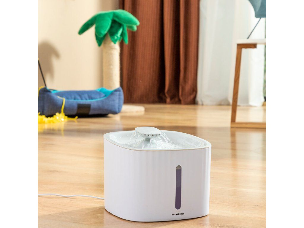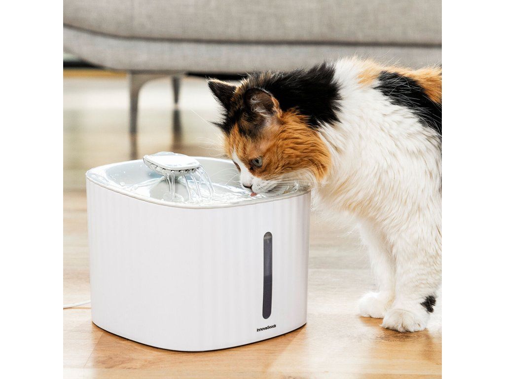 Fontána na pitie pre mačky a iné domáce zvieratá Drinkatt InnovaGoods poskytuje kvalitnejšiu, čerstvejšiu a čistejšiu vodu pre zvieratá na pitie a uhasenie ich smädu vo väčšom pohodlí a bezpečí. Jej vnútorné čerpadlo umožňuje nepretržitý prietok vody, takže voda je v neustálom pohybe. Obsahuje tiež niekoľko voliteľných filtrov na ďalšie čistenie vody, ak je to potrebné.Táto fontána pre mačky a iné domáce zvieratá má 3 režimy prúdenia vody a je veľmi tichá, takže zvieratá môžu v pokoji piť bez toho, aby ich rušili zvuky, ktoré by ich mohli vystrašiť. Hoci je ideálna pre mačky, ktoré radšej pijú z tečúcej vody (na rozdiel od stojatej vody), je vhodná aj pre psov, králiky, vtáky a iné domáce zvieratá.