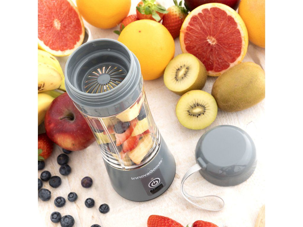 InnovaGoods je tu, aby vám pomohla variť ľahšie a zábavným spôsobom a preto vám ponúka novinky pre vašu kuchyňu, ako sú Nabíjateľný prenosný mixér s pohárom Shakuit InnovaGoods Kitchen Cook! Objavte širokú škálu vysoko kvalitných výrobkov, ktoré vynikajú svojou funkčnosťou, efektivitou a inovačným dizajnom!Nabíjateľný mixér na výrobu prírodných koktailov, džúsov a smoothies s úplným pohodlím doma, v kancelárii, v posilňovni atď. Vďaka svojmu kompaktnému a prenosnému dizajnu ho môžete ľahko prenášať kdekoľvek v taške, batohu atď.,okrem toho ho môžete úplne rozobrať, aby ste ho vyčistili. Má objem 380 ml, 4 čepele, rukoväť na prepravu, LED indikátor nabíjania a bezpečnostný systém, aby čepele nefungovali, keď výrobok nie je správne zmontovaný a zatvorený. Má tiež systém proti kvapkaniu a vyliatiu a výstupný filter na nalievanie obsahu pripraveného na pitie, bez hrudiek a dužiny. Jeho ukazovatele polohy pohára vzhľadom na základňu pomáhajú pri správnom umiestnení, aby bolo možné otáčanie. Jeho obsluha je veľmi jednoduchá, stačí stlačiť tlačidlo na zapnutie/vypnutie, kým nezískate požadovanú textúru, a rýchlo tak dosiahnete optimálny výsledok vďaka jeho výkonu a rýchlosti (17 000 ot / min). Odporúča sa umiestniť mixér pod uhlom 45 ° a jemne ho pretrepávať, aby sa urýchlil a zlepšil proces miešania.