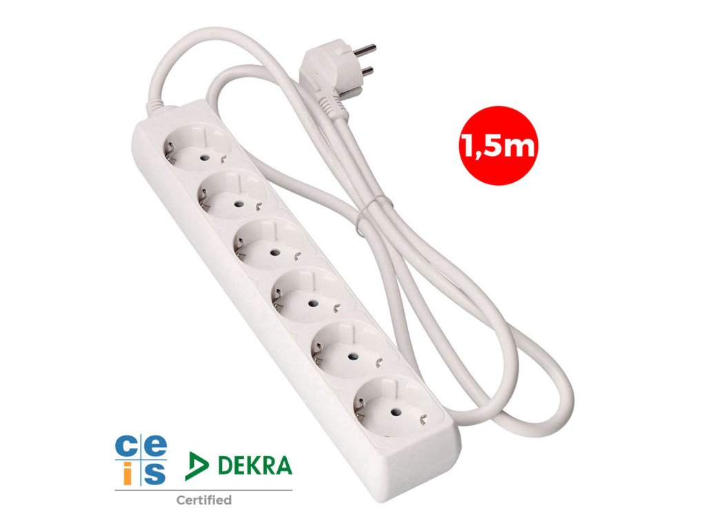 Predlžovačka 6 zásuviek EDM Schuko Biela (1,5 m)