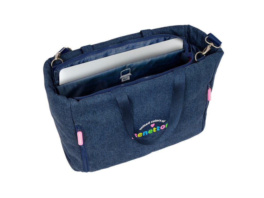 Dievčenská taška s priehradkou na notebook Benetton Denim Modrá (40 x 31 x 17 cm)