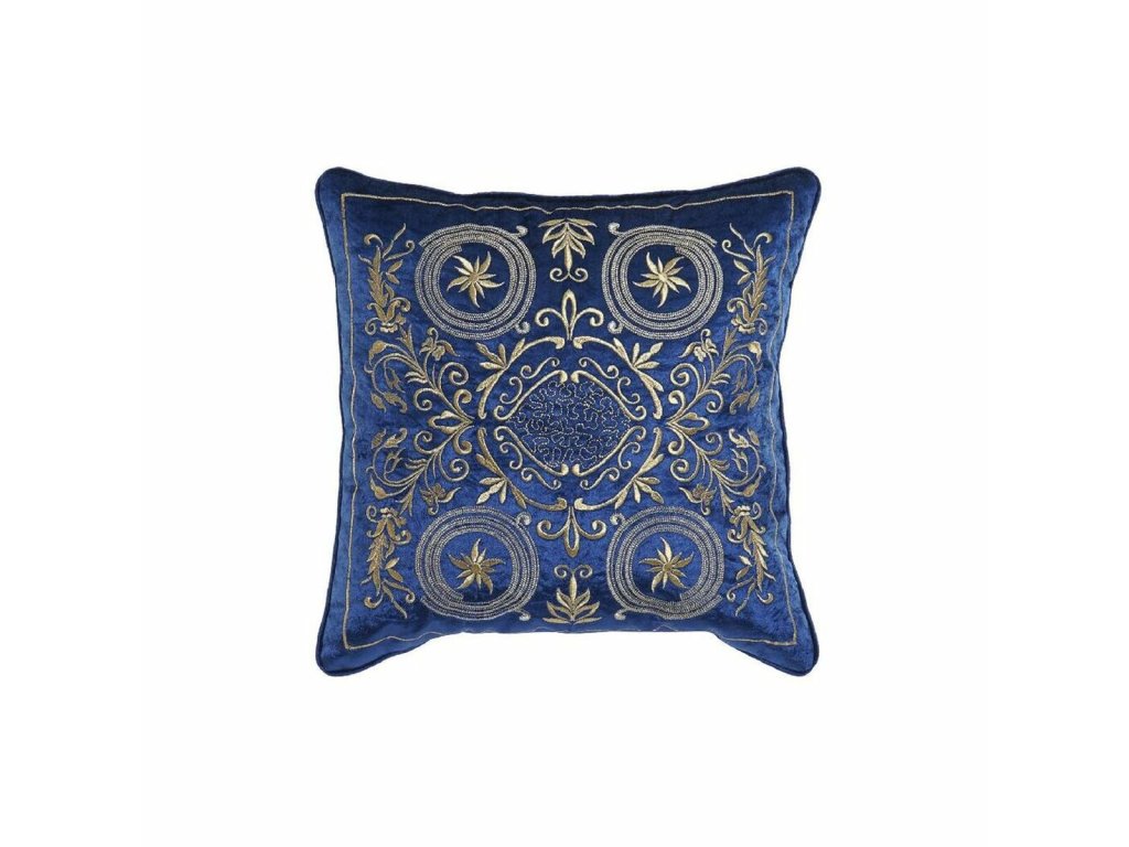 Ak chcete vášmu domovu dodať kúsok originality, môžete tak urobiť s Vankúšik DKD Home Decor Modrá Polyester Zamat Zlatá (45 x 10 x 45 cm).