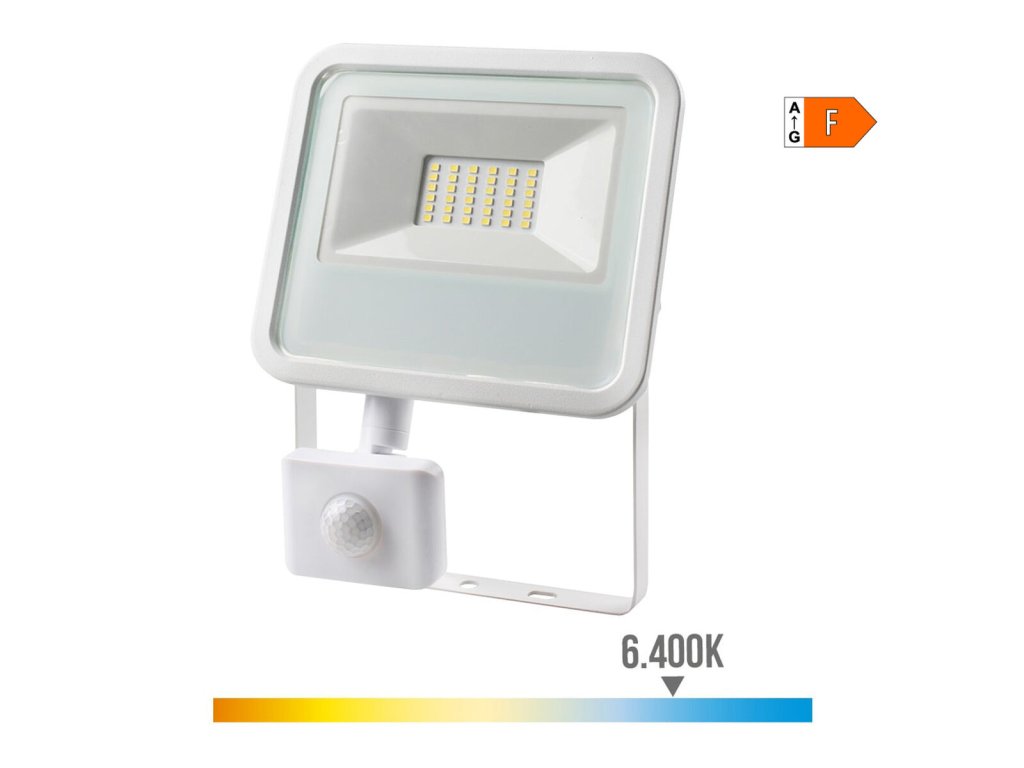 Ak pri zariaďovaní vášho domova kladiete dôraz na všetky detaily a chcete byť priebežne informovaný o najnovších výrobkoch, ktoré vám uľahčia život, nakupujte Žiarovkový projektor EDM 70392 Biela F 30 W 2100 Lm (6400 K) za tú najlepšiu cenu.LED reflektor EDM Product je svietidlo navrhnuté na silné a efektívne vonkajšie osvetlenie s príkonem 30 W, ktoré poskytuje svetelný tok 2370 lúmenov, ideálne pre jasné a rovnomerné osvetlenie. Jeho neutrálnobiela farba so svetelnou teplotou 6400 K (studené svetlo) je vhodná na zvýraznenie vonkajších priestorov s optimálnou viditeľnosťou. Vyrobený z odolných materiálov, kombinuje hliník a pevný plast, čo zaručuje pevnosť a správne odvádzanie tepla. Tento reflektor má integrovaný pohybový senzor s nastaviteľným dosahom od 2 do 10 metrov, výškou inštalácie od 1,8 do 2,5 metra a uhlom detekcie až 140°, čo umožňuje presné prispôsobenie rôznym prostrediam a potrebám. Čas oneskorenia senzora je nastaviteľný od 10 sekúnd do 8 minút, čím sa optimalizuje úspora energie a komfort používania. Jeho stupeň krytia IP65 potvrdzuje odolnosť proti vode a prachu, zabezpečujúc výborný výkon v nepriaznivom počasí, zatiaľ čo priložený káblový konektor má ochranu IP68, ktorá zaručuje bezpečné a vodotesné spojenie. Uhol vyžarovania svetla 120° umožňuje široké a rovnomerné rozloženie svetla. S kompaktnými rozmermi 15,8 x 20 x 4,5 cm je tento reflektor jednoduchý na inštaláciu a manipuláciu. Pracuje na napätí 220-240 V a jeho životnosť je približne 25 000 hodín, čo zaručuje dlhú trvácnosť. Má energetickú triedu F, čo je dôležité pre používateľov, ktorí oceňujú efektívnosť pri vonkajšom osvetlení. Je to praktické a odolné riešenie pre tých, ktorí potrebujú spoľahlivé a prispôsobiteľné vonkajšie osvetlenie s dôrazom na funkčnosť a technický výkon.